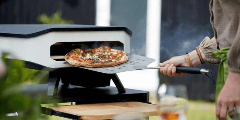 Datorita designului compact, similar unui mini cupto electric pizza, poate fi amplasat cu usurinta in bucatarii mici, pe balcoane sau terase inguste, iar masa de exterior extensibila are manere ergonomice, carlige din inox pentru accesorii si o structura stabila, rezistenta la intemperii, oferind un spatiu de lucru practic pentru gatit. Dotat cu o piatra de pizza din cordierit, asigura o coacere uniforma si o crusta crocanta, indiferent de topping.