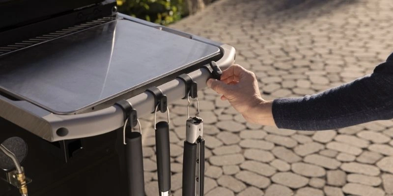 Organizeaza-ti eficient spatiul de gatit in aer liber cu Weber Works, un set complet si practic care iti tine la indemana toate accesoriile esentiale. Acest set este conceput pentru a se monta rapid pe sina Weber Works, facand parte din sistemul modular Prep, Cook & Store. Setul include suport pentru prosoape de hartie, care mentine rola stabila si previne desfasurarea accidentala, suport pentru saci menajeri, format din doua piese ce fixeaza sacul si il mentin deschis, 4 carlige pentru ustensile, ideale pentru agatarea spatulelor, clestilor sau razatoarelor.